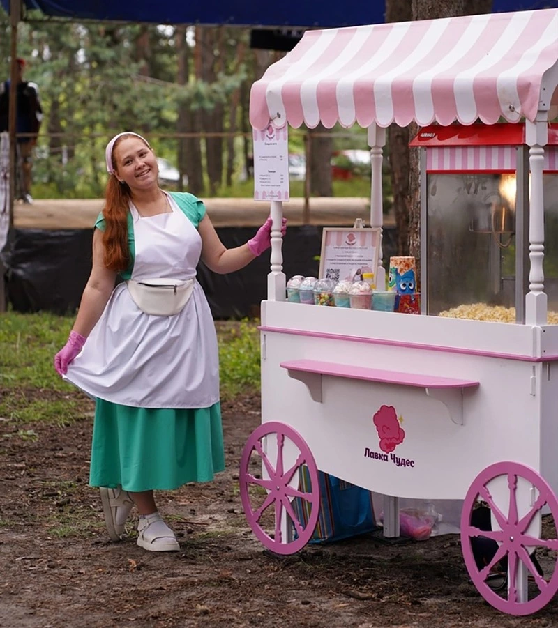 Казалось бы, банальный процесс получения от продавца лакомства Ксения превращает в настоящее волшебство. Не случайно ведь на её яркой тележке написано «Лавка чудес». Чтобы соответствовать названию, хозяйка становится милой аккуратной феей и немножко аниматором. Опыт у неё есть достаточный — во время учёбы она несколько лет подряд подрабатывала аниматором, проводила праздники для детворы.