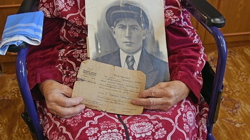 «А тут война... Отца забрали осенью 1941 года, а уже в марте 42-го пришла похоронка… Тогда почта была в Бородине, и письма носил дед Сидор, который зимой и летом ходил в лаптях. Все его боялись… Боялись, что принесёт тяжёлые вести с фронта. Так и случилось. Не знаю, как так вышло, но мы на отца получили две похоронки. Первая уж затерялась где-то, но я хорошо помню, что там было написано: умер в передвижном госпитале и похоронен в селе Юрьевка Старорусского района. А вторую я храню до сих пор. Здесь тоже указано, что погиб он в Ленинградской области, Старорусском районе, только в деревне Горушки», — со слезами на глазах рассказывает Татьяна Стефановна.