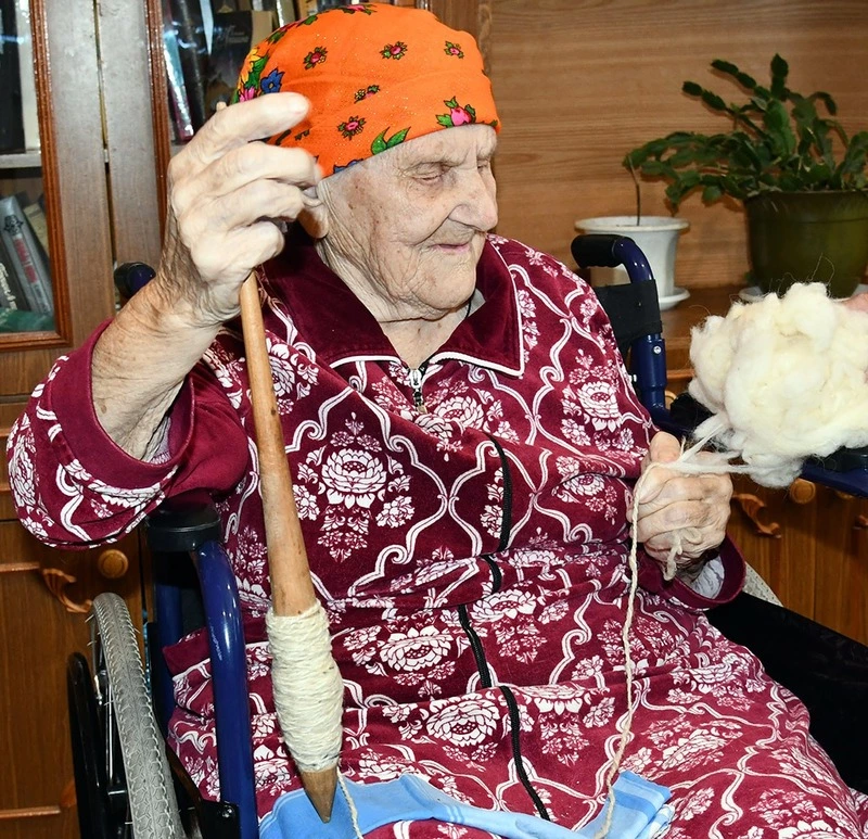 Это было в январе 1943-го, когда до Победы оставались ещё два долгих года… 13-летняя Татьяна трудилась в колхозе наравне со взрослыми женщинами, всеми силами помогая в борьбе с лютым врагом. По вечерам она брала старинное веретено, и девичьи руки умело крутили тонкую деревянную палочку, наматывая сотни километров овечьей пряжи, из которой потом выходили тёплые шерстяные носки для бойцов. Точно так же она взялась за прялку и спустя 80 лет, когда не смогла оставаться в стороне от происходящих в стране событий.
