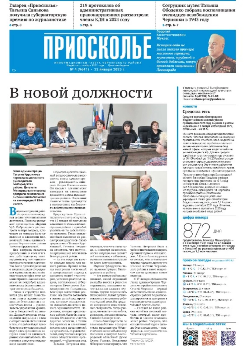 Газета «Приосколье» №4 от 23 января 2025 года