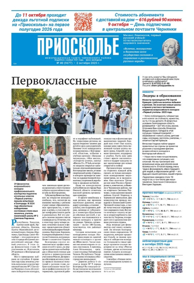 Газета «Приосколье» №40 от 2 октября 2025 года