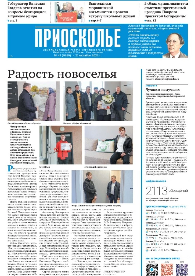 Газета «Приосколье» №43 от 23 октября 2025 года