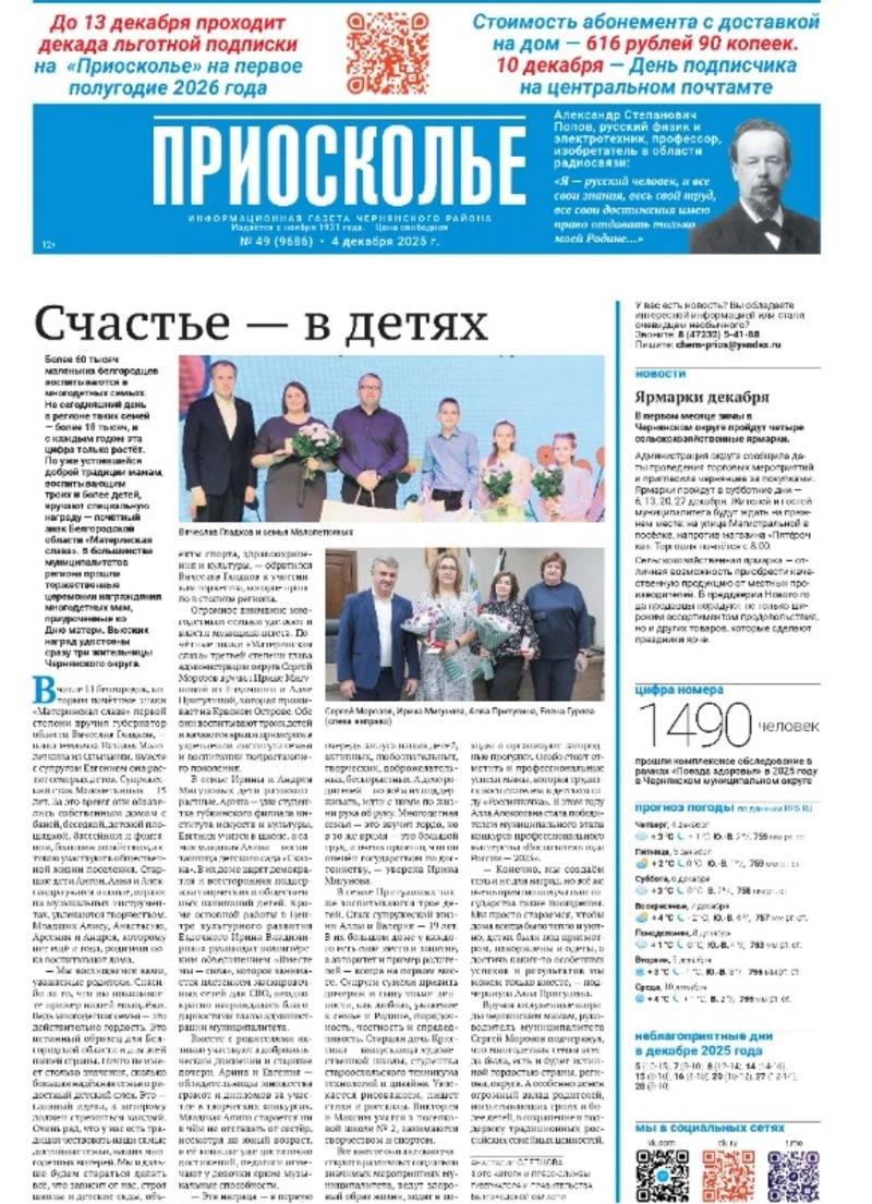 Газета «Приосколье» №49 от 4 декабря 2025 года