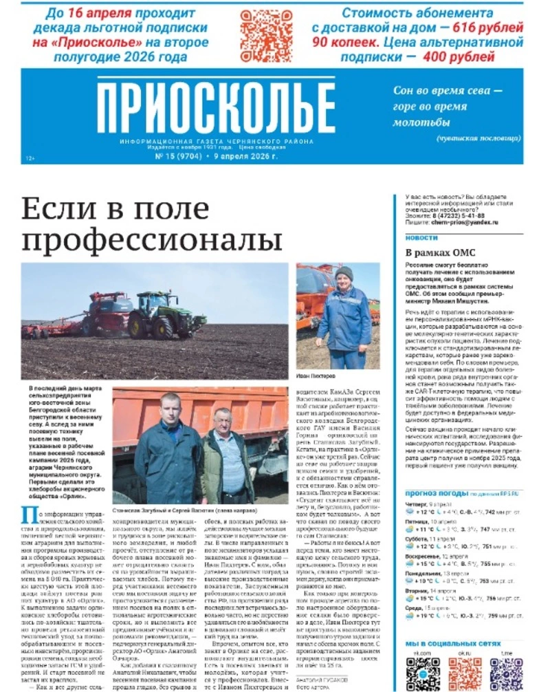 Адрес редакции: 309560, Белгородская обл., Чернянский м.о., пос. Чернянка, пл. Октябрьская, зд. 7