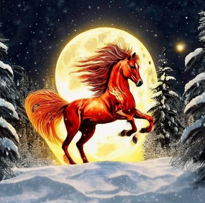 Природа наделила лошадь скоростью и умом, красотой и грацией, силой и отзывчивостью, верностью и чувствительностью, дружелюбностью и выносливостью. Мы попросили нейросеть Кандинский сгенерировать лошадь на фоне лучистой луны, освещающей ночное небо. Лошадь как бы отдаёт свой свет, свою энергию, окутывая нашу землю уютным, мирным, спокойным вечером. Создав такой таинственно-величественный фон, мы хотим выразить веру в то, что скоро наступит Мир на всей земле. А ещё мы хотим подчеркнуть неповторимую красоту нашей малой Родины и замечательные черты характера людей, связавших свою судьбу с чернянской землёй: их созидательную энергию, волю к движению вперёд, к развитию, их верность своей Отчизне, трудолюбие и добродушие.